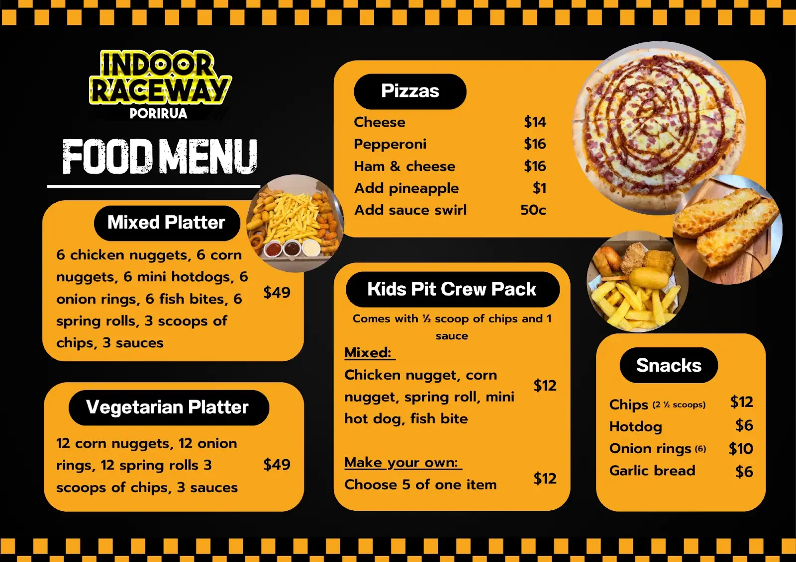 Should you wish to have some food after your racing, for businesses, or for family & friends